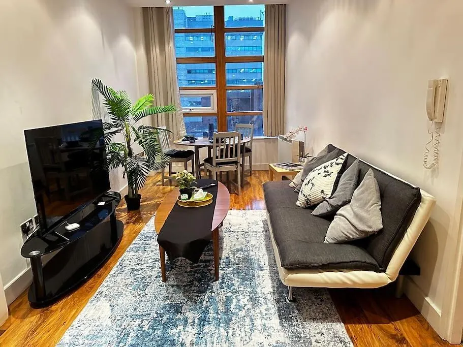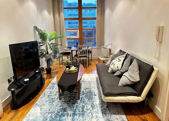 El Luxury Two Bedroom En-Suite Apartment Mánchester está situado a tan solo 13 minutos a pie del Centro de conferencias de Mánchester, y a 2 km de la Biblioteca John Rylands.